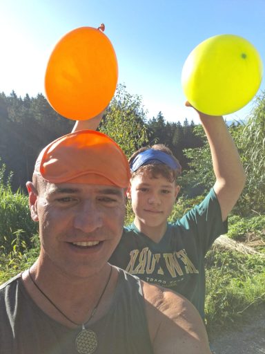 Mal im Wald meditieren und mal gegen einen Boxsack Dummy lachen, schlagen, schreien.