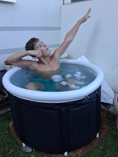 Eisbaden im kalten Wasser, Atmen und gemeinsam Sinne erleben. ECH Massage Einklang Geist Körper Seele um Höchstleistungen zu erleben.